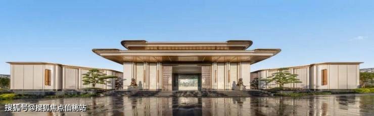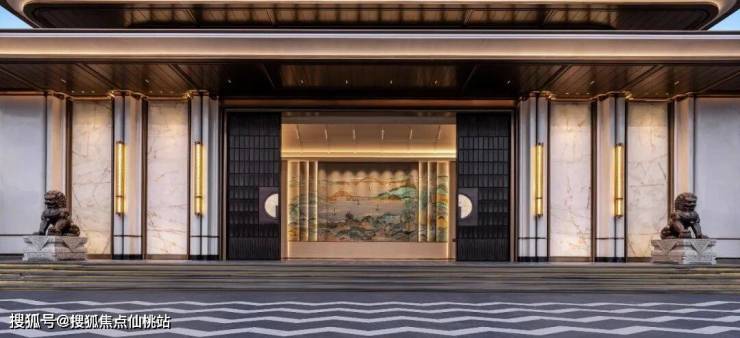 楼盘大门仍然是建发标志性的重檐庑殿顶,但这一次,他们用圆润的曲线取代了飞檐翘角,把煊赫的坡屋顶意象藏在了大堂室内的天花板上。这大概就是朱熹所说的「安舒而不矜肆」。