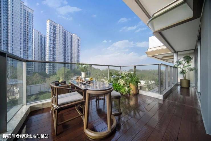 这套建筑面积约179平米户型是南北双露台设计,客厅的一步阳台边,还藏着另一个大露台。你也可以像建发一样在露台上加装一台电动折叠遮阳棚,在家里就能营造出户外咖啡馆的感觉。