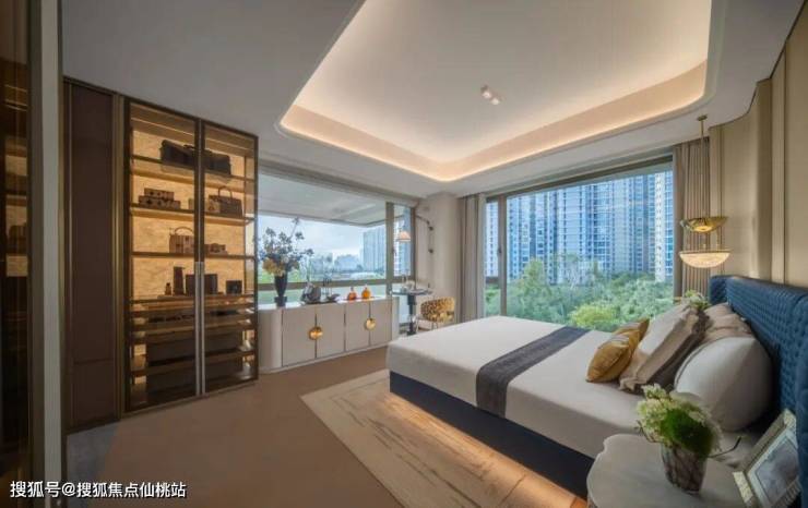 作为新规之后的产品,建发·书香五缘的实际使用率超过100%,层高也有约3.15米。进门之后的「800库」储藏间、通透的厨房、南北双露台,都是高水准的空间链接术。这个户型当然还拥有宽绰的四开间朝南,拥有270度视野的主卧套房里,还配备了一个敞亮的卫生间,还有大面玻璃带来的自然采光梳妆台与迷你吧。