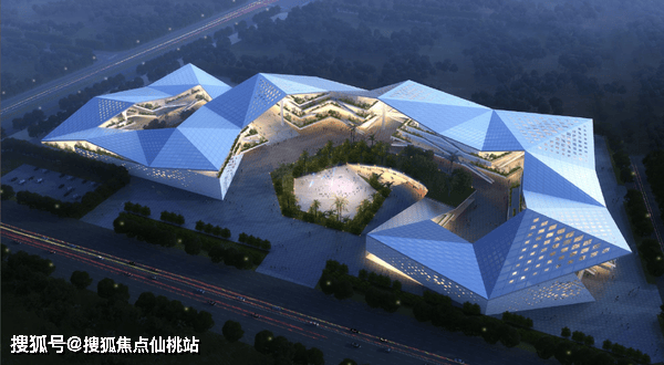 距离项目200M,包含规划博物馆、图书馆、科技馆、档案馆、文化馆、演艺中心,项目总用地面积99879.5㎡(约150亩),总建筑面积97303.57㎡,总体可接待容纳人数约10000万。