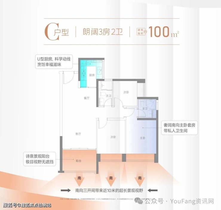 (3)U型大厨房,大客/餐厅,大阳台!(4)推门见山,辽阔视野!