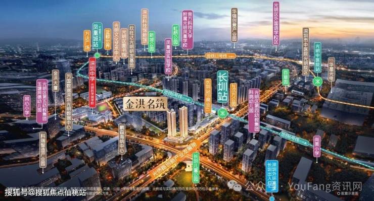 【金洪名筑核心价值点】世界一流科学城,凤凰城核心区,立享精粹醇熟配套光明科学城,中国版“硅谷”、大湾区科技创新“主引擎”。凤凰城片区,将打造成光明中央商务区、总部经济聚集区、超级商圈所在地。金洪名筑占据凤凰城“一环两轴三核”发展格局中的“一轴一核”(光侨路——创新产业发展轴;轨道长圳站节点——光明门户之核芯)。周边云集金洪大厦、招商智慧城、TCL华星光电等十余个科技产业园区,释放磅礴产业红利。
