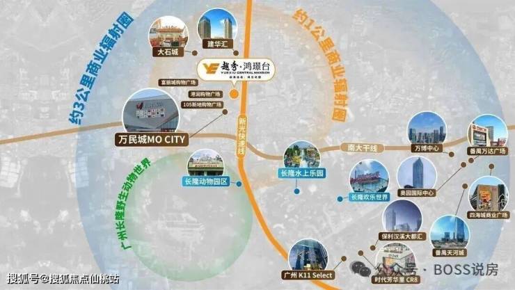 高端商圈:距万博 CBD 约 3 公里,地铁 1 站可达,天河城、万达广场、四海城等高端商业体齐聚,提供高阶消费与社交体验。
