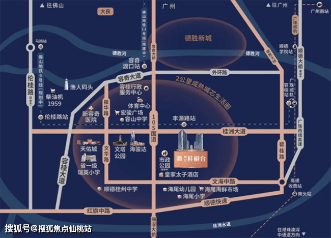 在顺德,哪里靠近镇政府,哪里就是真正的中心,顺控桂樾台距离容桂街道办事处,不过距离三四个街口,真正处于容桂的经济、文化、政治腹地,位置不可替代。