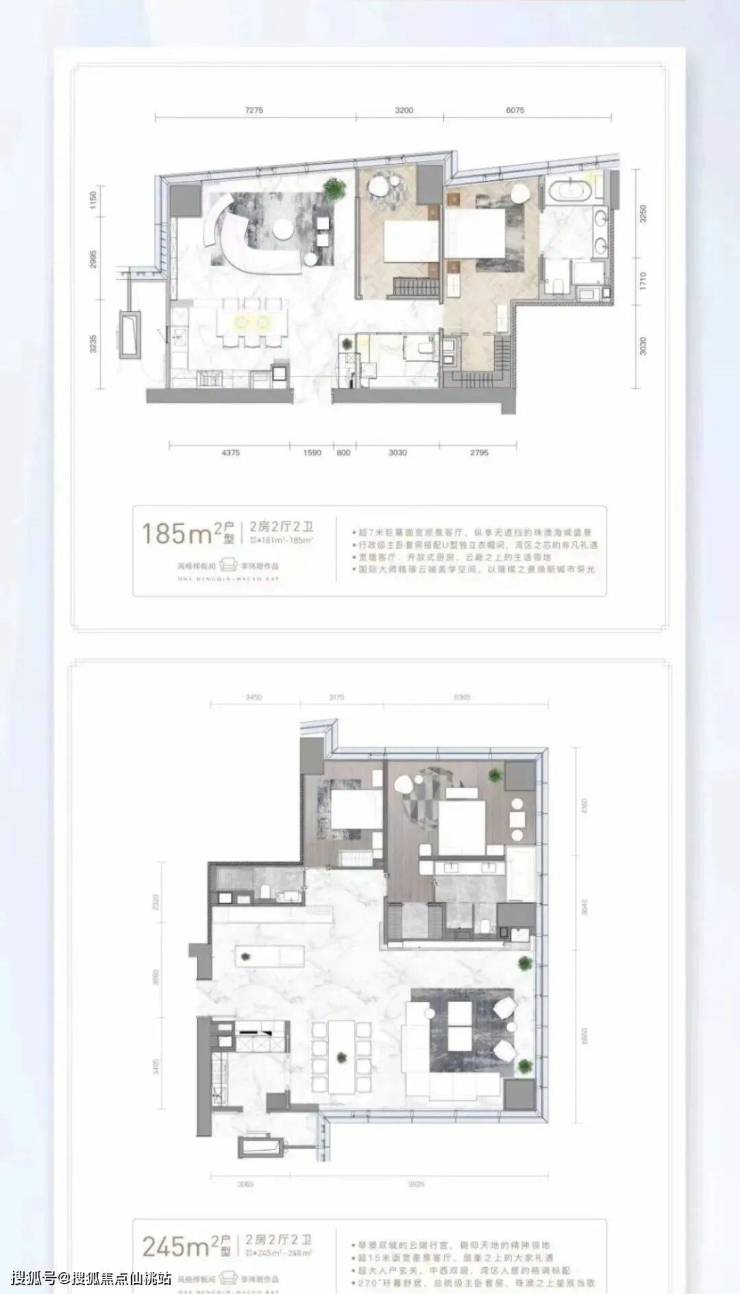245㎡户型,从灰色系中汲取设计元素,用木与石灰调之间的互动,展现丰富的肌理效果。 通过墙面的减少,将阳光与景观代入整个客餐厅,从精致的玻璃酒架,视线便可一直延伸向景观面,纵享沉浸式海幕景观。售楼处电话:400 006 8087