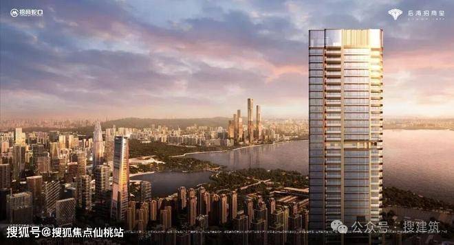 塔冠采用“灯塔”造型设计,成为后海大道沿线的视觉焦点;裙房则以“流光浮匣”为概念,通过错落排布的模块构建丰富立面,与塔楼形成和谐呼应,共同塑造出高辨识度的城市天际线。