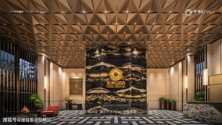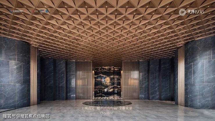 抬眼:是天序1958耗费重金以3000片鎏金鳞纹打造的铝板吊顶,由12位专业手艺人耗时15天全手工拼接而成,其中点缀700余盏星空灯,用一扇天花板定义长沙豪宅大门的美学新高度。