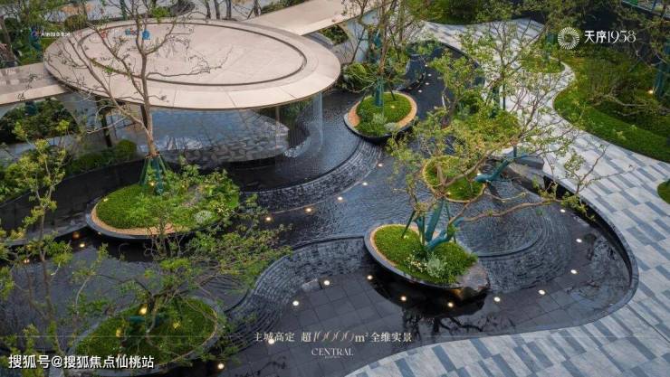 园中,造价近百万的约500㎡叠瀑镜水+多株树龄30~60年的乌桕,是迎接业主入园第一道风景。