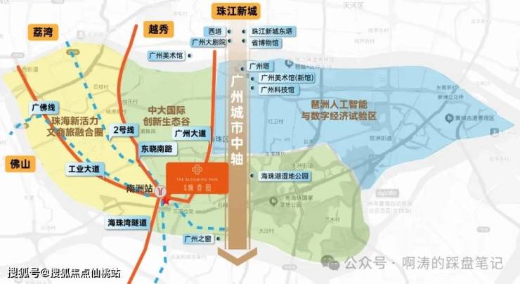 “琶洲数字经济区、文商旅融合圈、中大创新谷”三大产业板块环伺