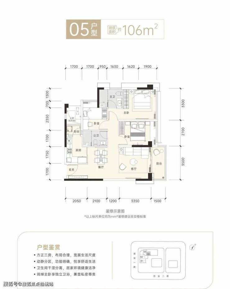 户型臻选:106-127㎡三至四房尺度体验:层高约3.15m,尺度舒适;约10.8m挑高奢华大堂,高端品质巅峰礼遇