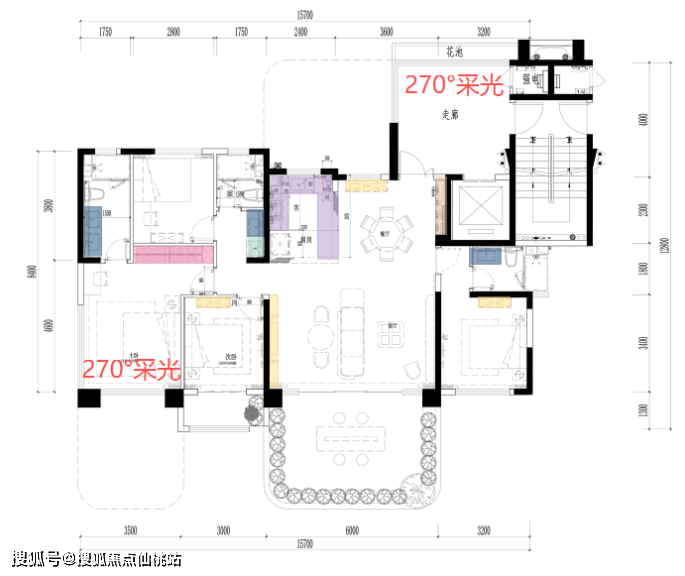 兰亭雅颂户型全部实现南向4面宽+270°采光主卧+全屋多达至少10个采光面。四代宅电梯厅更实现270°采光。二手房里采光好的房子一平米能多卖500元!