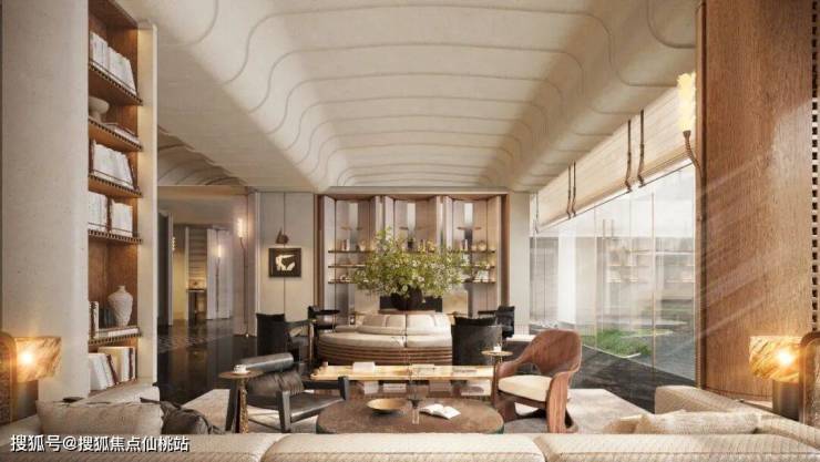 约1500㎡阳光下沉式会所实现王羲之《兰亭集序》中世家“曲水流觞”的宴酣之乐,打造出层叠水景和立体公区,把茂林修竹的文人雅趣融入景观细节。目前上海深圳售价超15万+/㎡的豪宅才拥有同款配置。