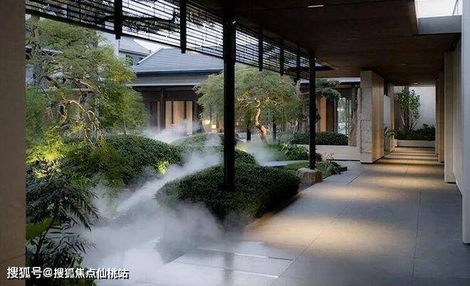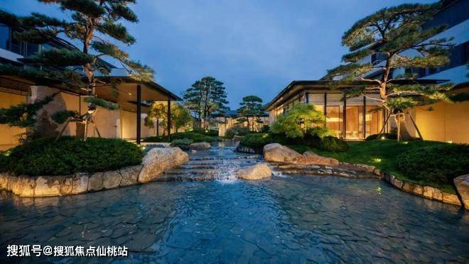 约60m青山画屏展开山水文人诗画藏卷,约7.4m九鲤飞瀑灵动的水系寓意聚财生宝,约150m揽翠回廊与绿色森境共鸣归家诗意,约300m廊架礼序轴与约230m归隐生活轴交织成廊,匠造十八巷园林体系。