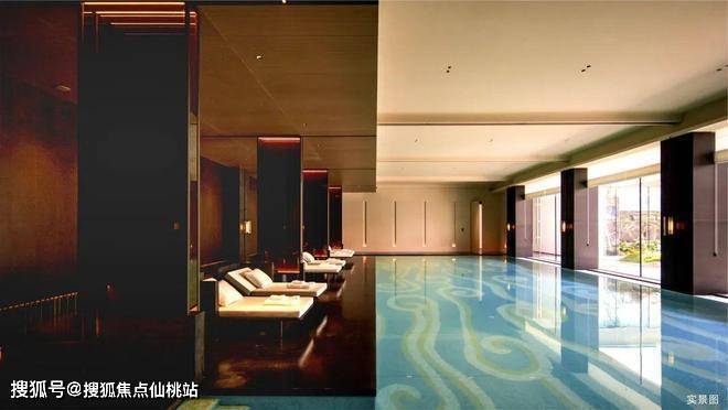 室内泳池的蓝色瓷砖折射出丰富的光泽,进口品牌的健身器械排列整齐,瑜伽室隔绝了外界喧嚣,为业主打造沉浸式身心养护之所。