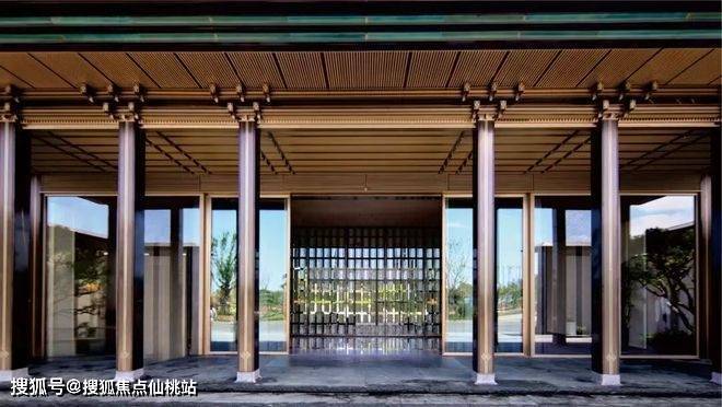 大门设计融入悬鱼、挂落等宋式精细化建筑语言,通过现代工艺还原传统构件的精巧与雅致,赋予建筑深厚的文化寓意。