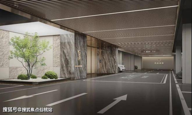 3.6米挑高地下车库入户大堂,深色系的环氧地坪搭配香槟金格栅吊顶,加上无形LED灯点缀,美观大气,营造视觉上的和谐统一。车库中四处可见的“建发·瑞云”logo景墙,提升了归家仪式感。