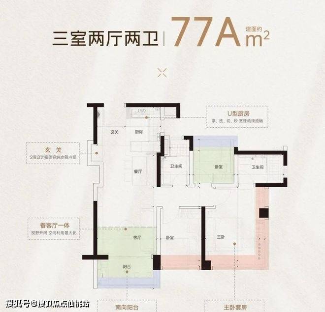 项目户型涵盖了约77-135㎡三至四房,整体约127-137%使用率,首推9#和1#,33层高,两梯五户。