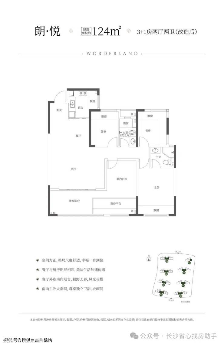 建筑面积约124㎡3+1房、约5.4m客厅开间、小面积大格局、得房率约101%