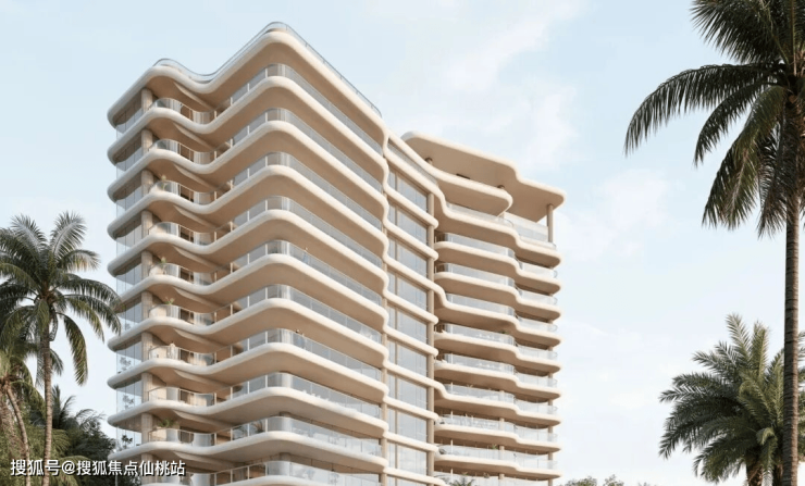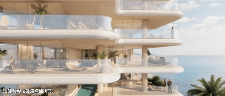 汲取全球滨海奢宅灵感,以现代手法演绎经典:弧形曲线呼应海浪,横向飘板勾勒如海平线般开阔、平稳的观感,营造从容、安宁的“滨海松弛感”。