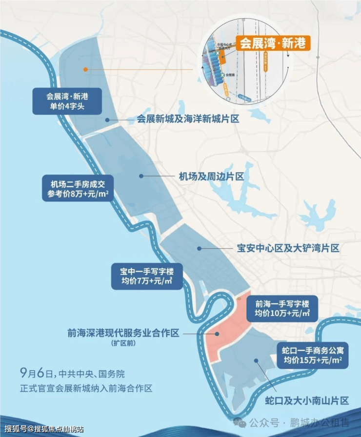 “前海扩区”政策正式实施!前海自贸区的面积已扩展至120.56平方公里,相当于深圳市总面积的6%。作为前海的门户,会展湾的战略地位愈发凸显。