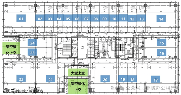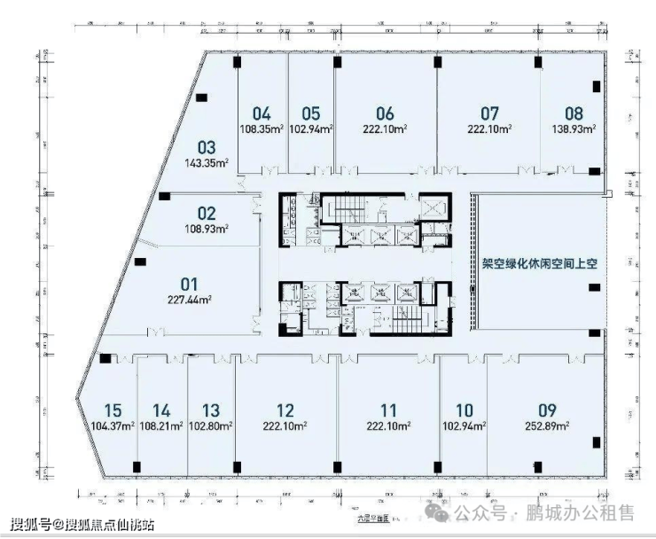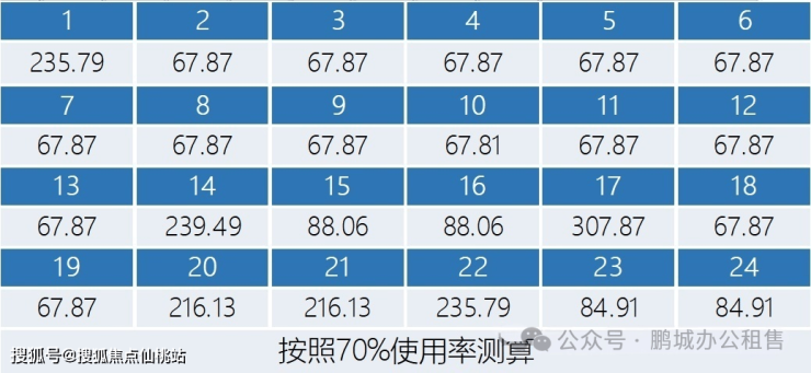 标准层占地面积约为2747平方米,总计24个办公单位,每个单位的产权面积介于67至236平方米之间。