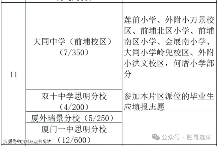 小升初这块第11片区是岛内优质潜力片区,目前比较普遍的排序是双十思明分校=外国语瑞景分校>一中思明分校(新校)>大同中学前埔校区。
