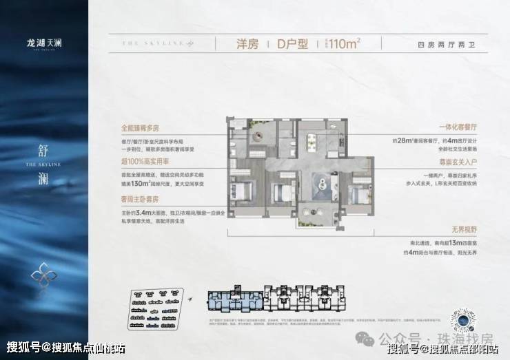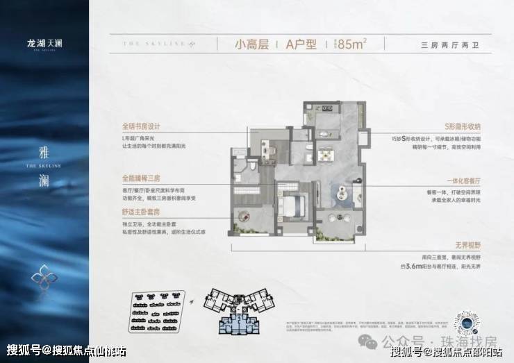 龙湖天澜,作为湖心新城首个新规后洋房社区,打造建面约85-144㎡奢境会所洋房,实用率超100%,刷新珠海户型标杆。