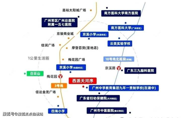 地理位置:位于广州中轴线核心区域,地处天河与白云两区交汇的梅花园板块,紧邻地铁3号线梅花园站(步行约200米),周边规划有18号线北延段京溪路站(预计2026年开通)。