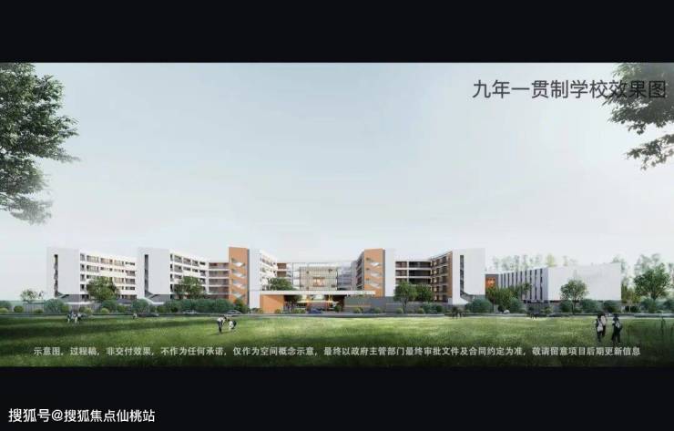 项目规划设计九年一贯制学校(与A区组团直线距离仅40米,一路之隔护航成长)。