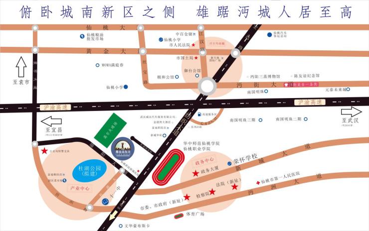 项目周边拥有优质教育资源:仙桃职业学院附幼儿园、仙桃第十一中学、工业园小学、荣怀教育园,致力于打造从幼儿园到高中的全龄段教育模式。