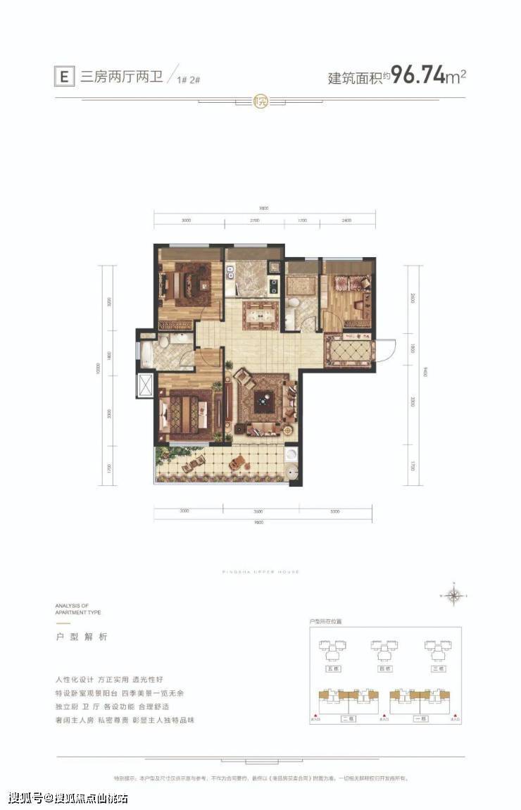 E户型面积:建筑约97㎡ 3房2厅2卫