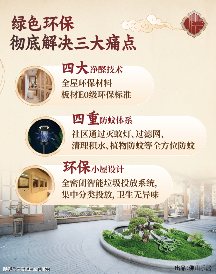 绿色更健康,实现全链守护:室内采用高标准环保建材与净醛工艺,并创新使用“水凝膜”进行成品保护,保利内部通过高品质的把关,达到“0”瑕疵交付,以求将最好的房子交到业主手上,即交即住。社区构建“四重防蚊体系”,通过物理阻隔、水体管理与植物驱蚊,减少化学消杀。同时设置智能封闭式“环保小屋”处理垃圾,杜绝异味,将绿色理念融入日常。