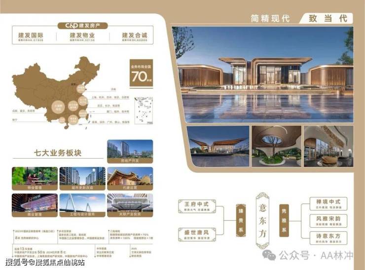 业务覆盖全国70余城,主要在一二线城市开发住宅、写字楼及大型公建项目。其产品理念包括“儒门、道园、唐风、华纹”,代表项目有合肥雍龙府、长沙松雅院等;2023年,杭州云启之江项目在商品住宅的销售套数、金额、面积方面均居前列,销售额超过180亿元,该项目于2025年12月完成交付。2025年,在中指数据发布的全国房企拿地排行榜中,建发房产在拿地金额及拿地建筑面积两项排名中均位列前十。该公司曾连续11年入选“中国房地产开发企业50强”,持有联合资信AAA主体信用评级,并获得过鲁班奖、国家优质工程奖等奖项。2022年,其位列中国房地产企业品牌价值TOP100第10名。建发房产设有慈善助学基金,相关捐款用于资助困难学生、贫困家庭及外来务工人员,截至2022年累计捐款超过1亿元。