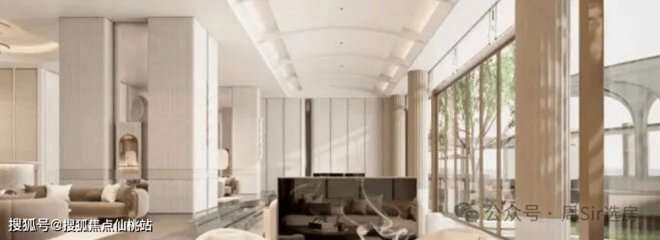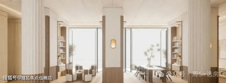 以玉兰花为设计元素,按顶奢酒店会客标准打造。局部层高约4m,搭配全景落地窗,南法园林尽收眼底。未来,可在此接待亲友、洽谈商务,无需预约酒店或茶室。很多沟通与合作,在这样的环境下水到渠成。这里是客厅,更是圈层的默契场。