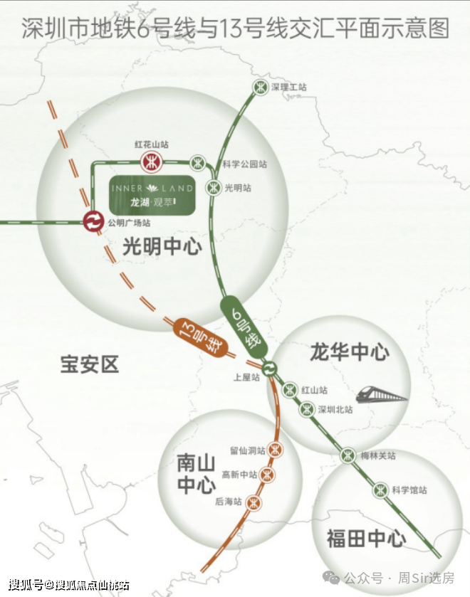 ★步行约300米就是6号线红花山站,一站可达公明广场换乘13号线(在建)。光明中心只此一站拥有双轨交汇。