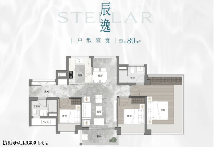 89㎡三房两卫户型采用LDK一体化设计,阳台进深超1.8米,功能分区清晰,居住舒适度较高;