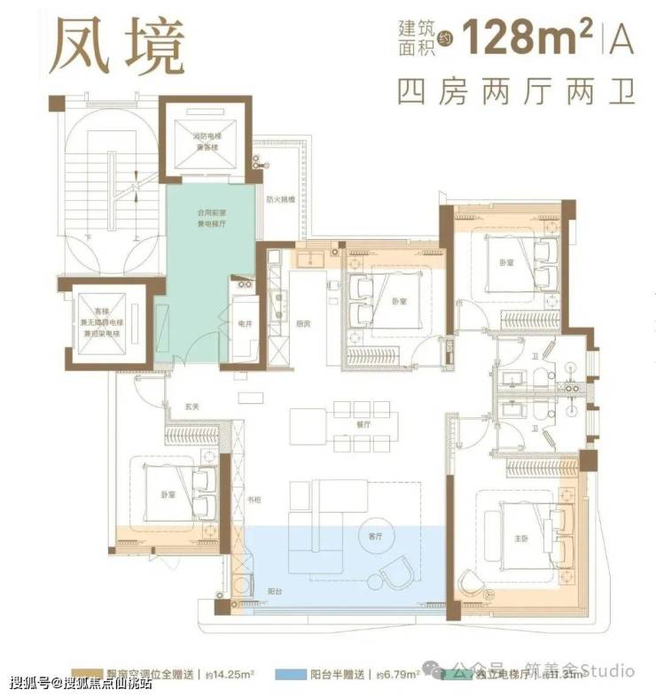 建筑面积约128平方米户型,实现了一梯一户的尊享配置,尽享私密空间。在传统户型受限于主卧独大、次卧狭小的局限时,左海金山文翠项目突破局限,四个卧室均拥有近3米的宽敞面宽,满足三代同堂的生活需求,无需妥协。