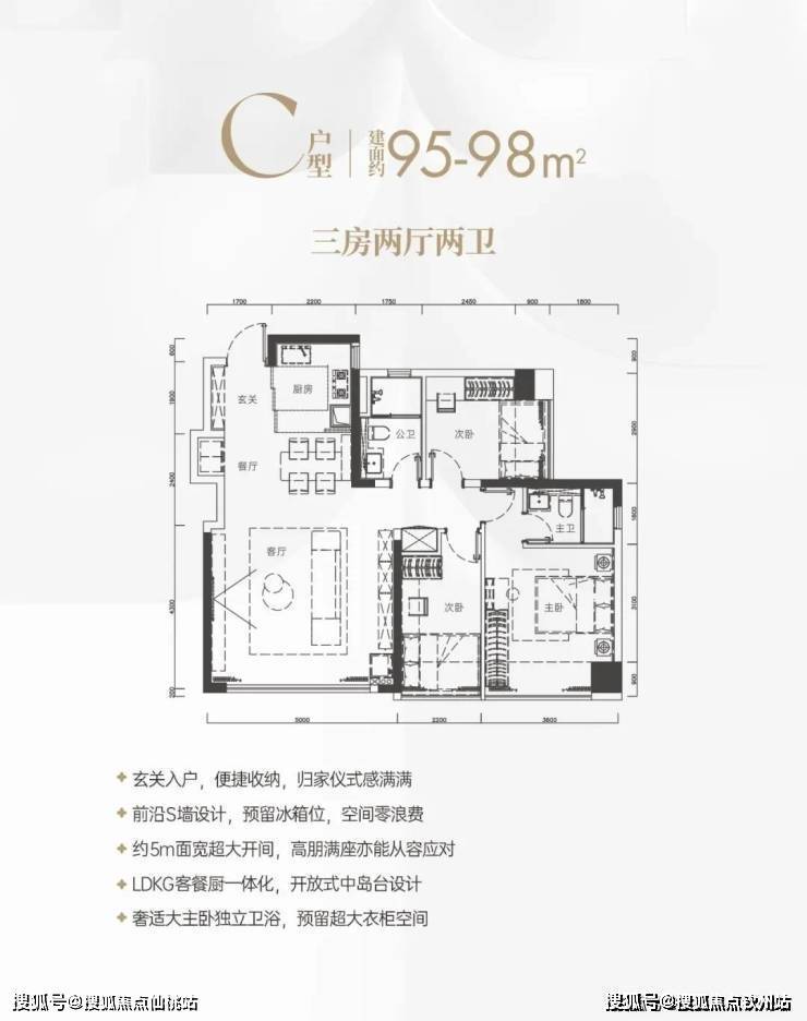 全屋150余项细节打磨,约95%使用率,得房率远超传统高层;95㎡户型客厅,5米超宽开间;九大收纳体系,近15%收纳比,对比传统收纳设计高出2.5倍,拓展更多空间。