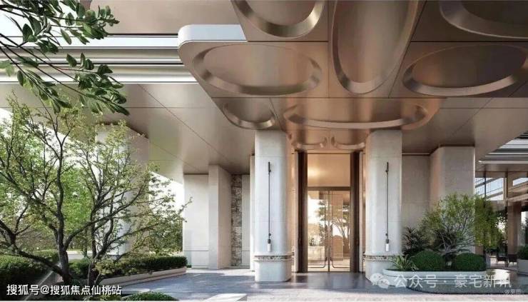 利用裙房屋顶打造拥有“仪式水轴“艺术庭院”“空中浮岛森林”三级景观设计的空中庭院,四栋住宅均漂浮于甲板之上,独享甲板庭院花园,以“海风吹拂下的豪宅底盘”托举城市上空的豪宅群落,形成立体景观系统。