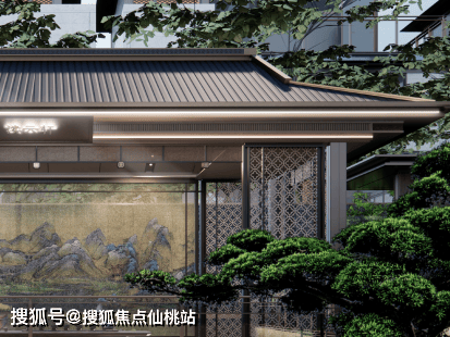 在屏风、挂落等细节营造上,将项目IP符号融入构件部位,以精致金属材质等现代材料,转译槅扇窗、挂落等构件,强化对宋风合院建筑的精细刻画,将现代审美与古典韵味不着痕迹地融合,营造当代美学之轻盈。