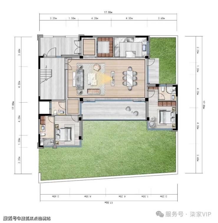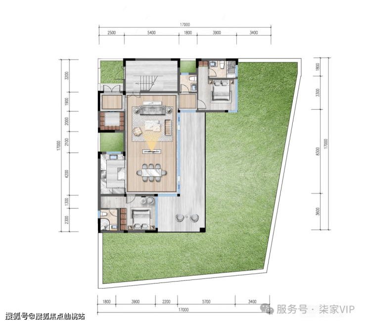 地上双层设计,首层连接庭院,打造可私宴、可会客的多功能场域;二层为主卧套房、衣帽间与星空露台,兼顾动静分区、私密性与尊荣感。