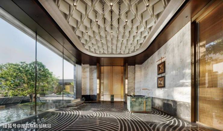 从超过60米的归家礼仪轴线开始,天瓒便为业主铺设了一条艺术之旅。高定艺术大堂以近5米挑高、约80平方米的超白玻璃作为取景框,将外部景致巧妙框入室内,归家每一步都伴随着视觉的享受与心灵的尊崇。