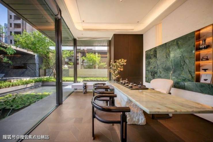 在这里,可以在高定艺术大堂会客,在中庭水院品茗静思,观赏莲池光影游曳,亦或于私人宴客厅与知己畅谈。社区内的多个泛会所空间,提供了恰到好处的社交距离与共享场景,让志趣相投的邻里有更多不期而遇的默契与共鸣。