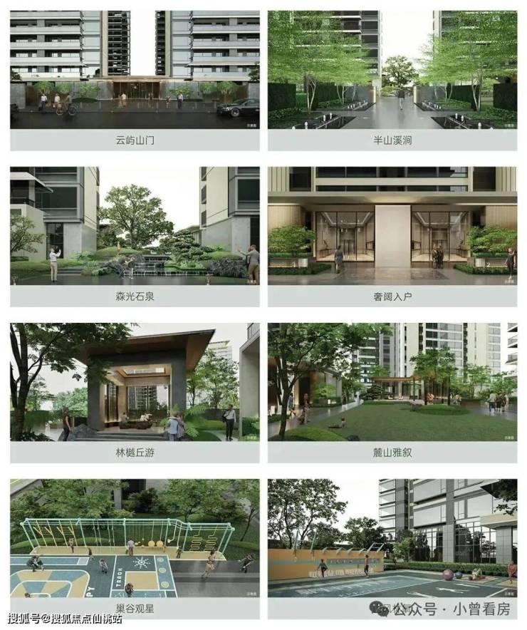 项目园林以 “一轴八苑” 布局精心打造,人行主入口两侧的礼仪中轴和艺术水景与白云山相互呼应。