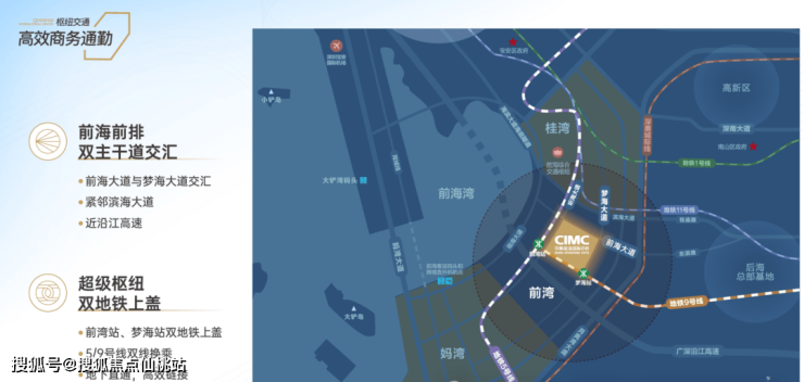前海规划“9+2+1”海陆空立体交通构架,便捷深港往来、加速粤港澳大湾区互联互通,执掌全球商务效率,高效联结全球商务资源,无缝衔接全球财富版图。