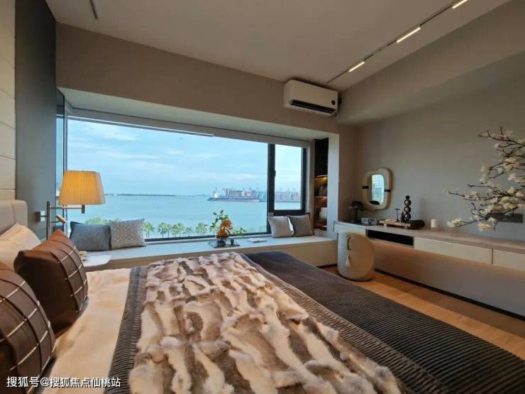超大衣帽间、梳妆台、独立卫浴空间、全景飘窗等一应俱全,最贵感十足,哪怕躺在床上,也能将浩瀚海景尽收眼底。