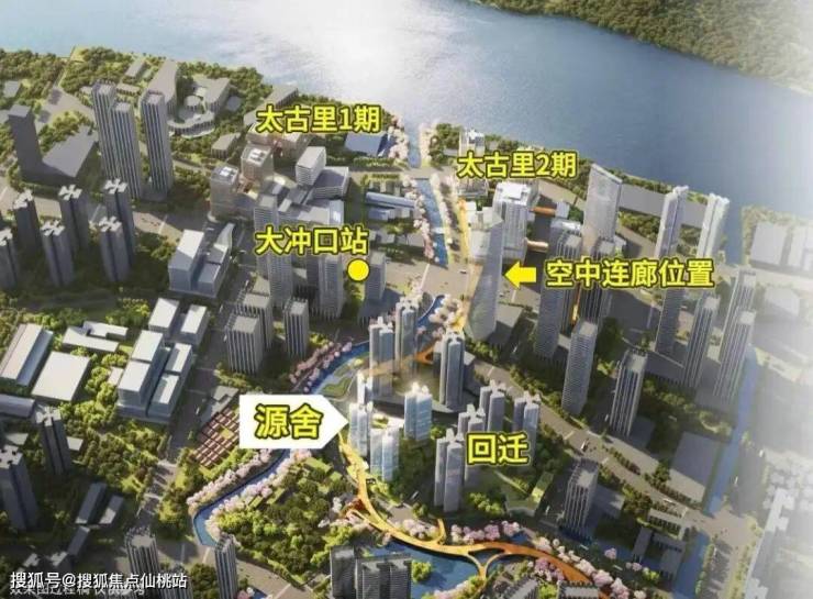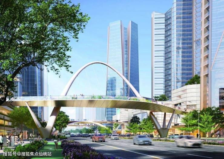 此外还规划有专属天桥系统,把小区附近的公园、古村、地铁站、太古里商业等各个业态都串联起来。