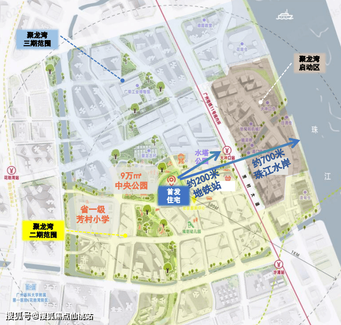 生态休闲:9万㎡中央公园+700米珠江项目西侧紧邻荔湾儿童公园(规划升级为9万㎡中央公园),北侧靠大冲口涌,园景+河景双重享受,闹中取静,河涌对面就是聚龙古村,步行300-700米可达太古里+珠江水岸,遛娃遛狗、散步跑步的空间足够。