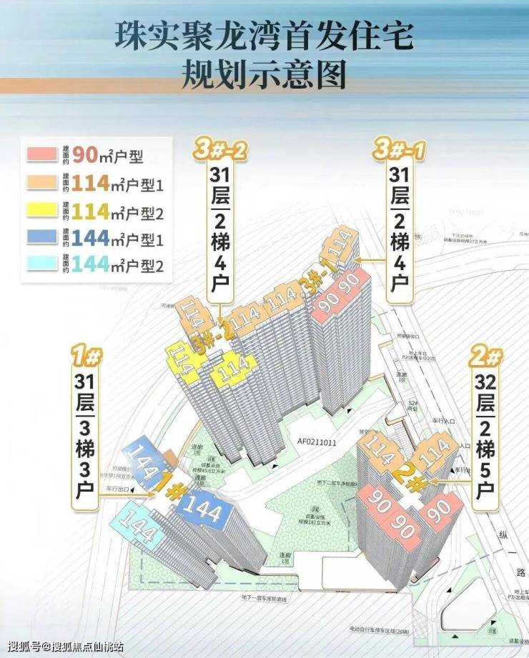 项目规划:地块面积相对较小,占地2.25万㎡,容积率3.5,共规划4栋住宅楼,31-32层,一栋2T5,两栋2T4,一栋3T3,合计460套,预计2028年底交楼。