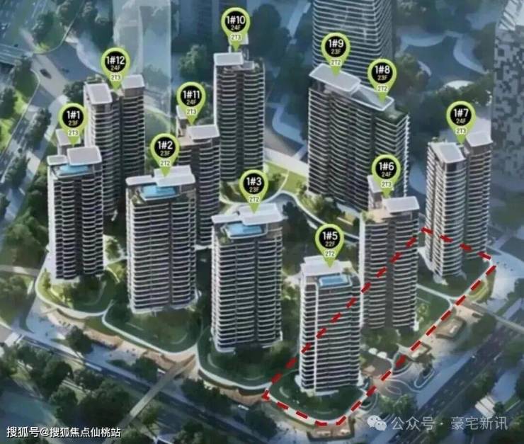 据传先卖5/6/7栋,179套建面约143-168-188-260㎡,5栋顶楼还有一套488㎡大平层(带私人泳池,可定制化装修),得房率近100%,大概2027年底精装交付!